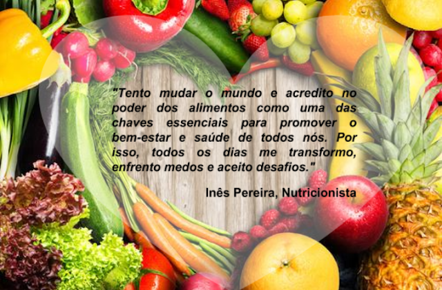 Com a Nutricionista Inês Pereira, Nº Cédula Profissional 3060N da Ordem dos Nutricionistas. Formações em Health Coach – Nutrição Integrativa (Institute for Integrative Nutrition ,E.U.A), Curso de Cooking for Health - Cozinhar para a Saúde (The College of Naturopathic Medicine, Londres ) e Cozinha Vegetariana. Com experiência em Nutrição Clínica, Nutrição Desportiva e Nutrição Comunitária, trabalha com diferentes faixas etárias (destacando jovens, adultos e dinâmicas em núcleo familiar).